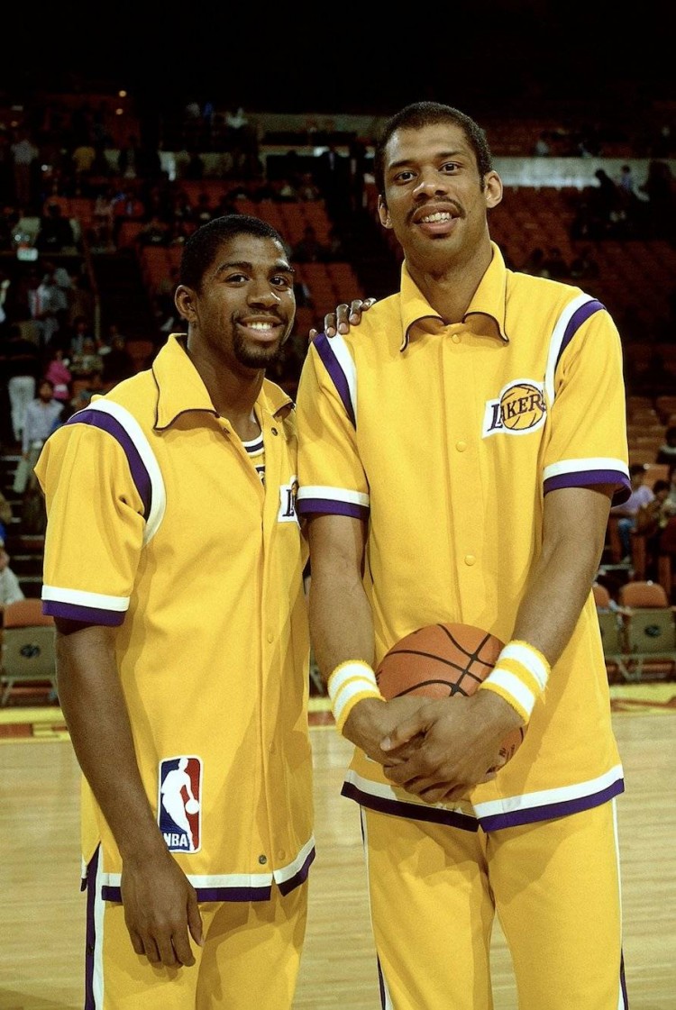 80年代:湖人队的魔术师 天勾贾巴尔,并肩作战10个赛季,共拿到5次NBA总冠军;