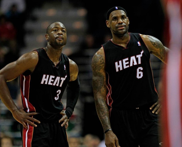 10年代:热火队的詹姆斯 韦德,并肩作战4个赛季,拿到两连冠;
