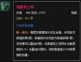 作为曾经英雄联盟杀人系列的三大装备之一,它的被动效果获取和杀人剑、杀人书一样,每次击杀或者助攻都能获得BUFF,每层BUFF提高32的生命值,叠满20层后免疫所有伤害的百分之十五,最终设计师可能考虑到脆皮英雄的生存能力问题,该装备在2012年便被拳头删除。