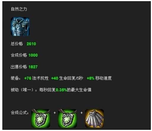 这也是老玩家在有印象的一件装备,其每秒回复0.35%最大生命的被动技能搭配8%的移速加成,简直就是逆天的存在,让盖伦和蒙多在团战中可以“七进七出”。