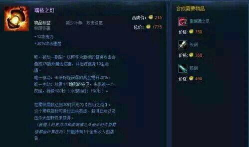 这件装备被玩家们俗称绿爪,一件非常昂贵的装备,但是效果非常厉害,击中时造成目标最大生命值4%的魔法伤害,那时候狼人和剑圣必出的一件装备。