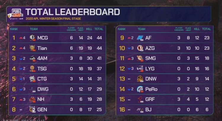 12月13日讯 绝地求生APL联赛第四日比赛已经结束,最后MCG拿到了本次比赛冠军,而Tianba荣获亚军之位。