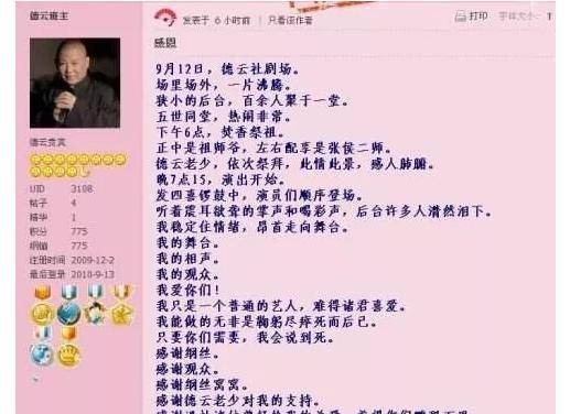 问题的关键是,曹云金从2010年底离开德云社后,对郭德纲从来没有二话,更没有攻击过德云社和郭德纲,他在自己从艺十周年的专场上应观众要求模仿了郭德纲,还当着所有观众宣告:郭德纲永远是我师父。