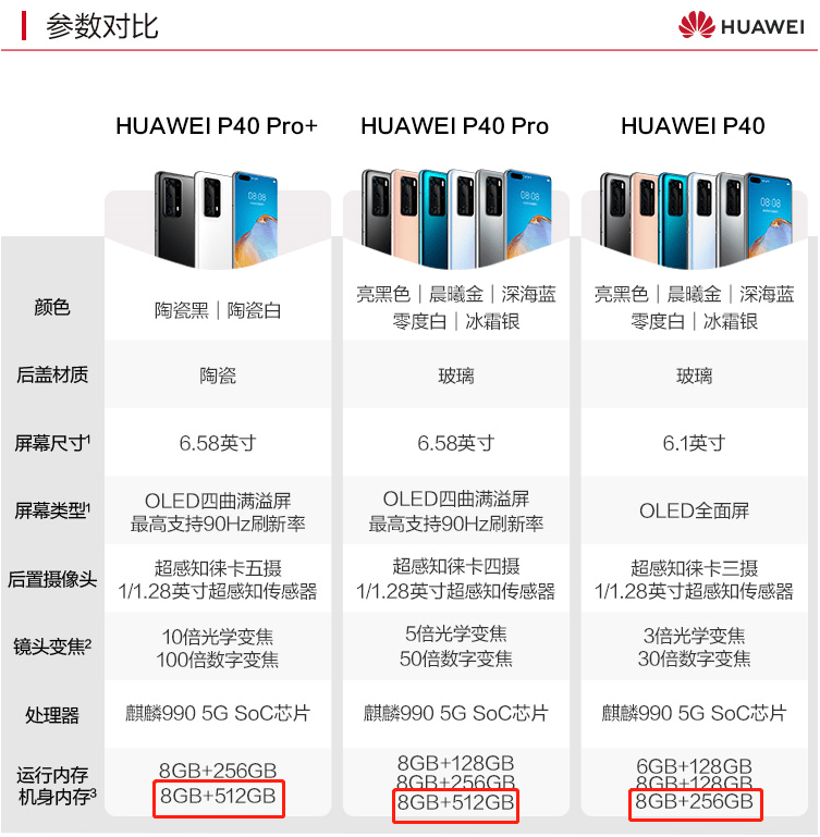 但P40系列的华为P40 Pro做到了,最高存储配置高达8+512G,这也是P40系列的一个竞争优势。