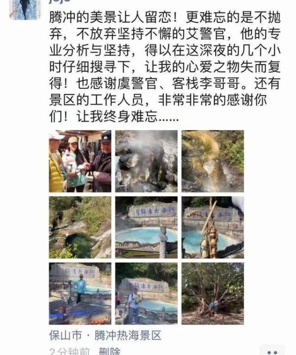 2020年12月8日凌晨,腾冲市公安局清水派出所接到游客报警求助:自己的心爱之物钻石耳钉遗失在景区里,找了很久找不到很着急。