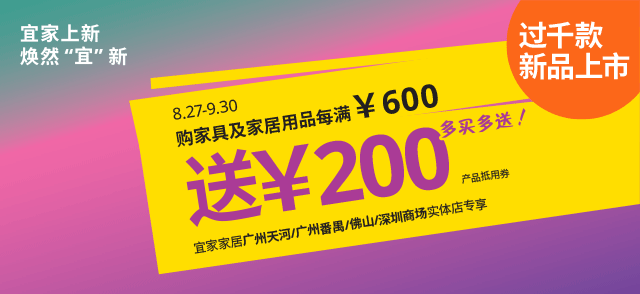 在此期间,8月29日至9月30日来宜家深圳商场购物每满600送200,多买多送!过千款新品和百款超值更低价产品等你来撩! (详见店内沟通)