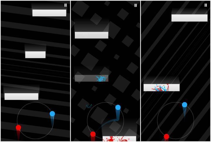 一款节奏很快、玩法简单的虐心小游戏。玩家需用两只手指不断旋转小球以躲避从天而降的障碍物。玩到中后期,旋转、变速、渐变的障碍物使得游戏有一些虐心。不过好在路程简短,强节奏感的鼓点与梦幻柔和的配音女声也让玩家们更耐得住性子。