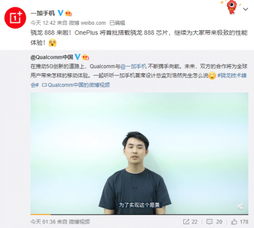 今年4月,一加发布了其首款商用毫米波手机,在欧美市场成为主流5G终端之一。在10月份的深圳40周年庆典活动中,一加的5G毫米波实验室也被央视重点报道,且率先完成了中国5G毫米波技术性能测试。另外一加历代产品都是搭载高通最新的8系顶级处理器,此次的骁龙888处理器同样不例外——一加刘浩然表示这款处理器将助力一加明年上半年推出的高端旗舰新品,骁龙888将继续、持续成就一加手机在全球市场取得更好的优异成绩。