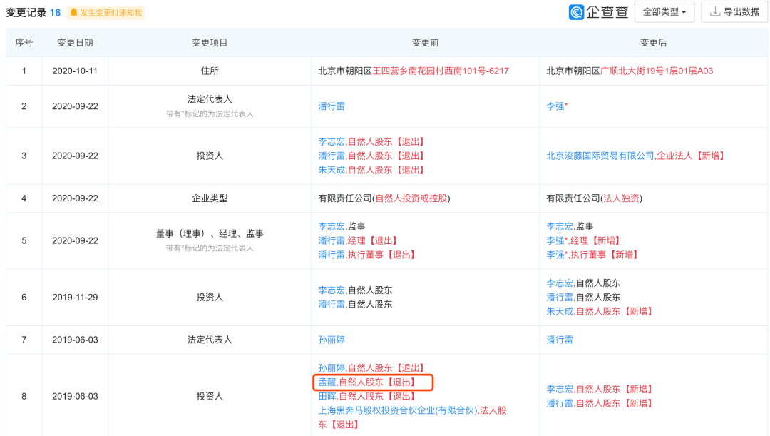 根据企查查显示,早在2019年6月,雕爷牛腩公司的法定代表人发生变更,创始人雕爷等人退出股东行列。