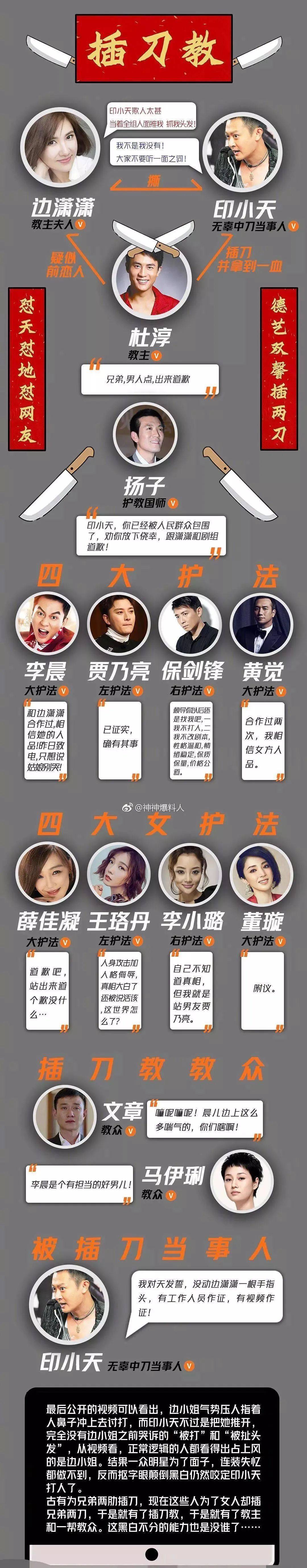 比如最最最出名的“插刀教”,其实很多人都听说过插刀门事件,上次写的时候还是有盆友不知道啥清楚,这里大概说一下,印小天也算是娱乐圈网暴的受害者。