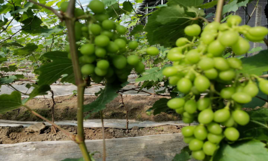 隔了一条路,在三个温室大棚的东侧,占地10亩的连栋大棚里,另一种葡萄的品种阳光玫瑰也在抽枝发芽。有了“香妃”的稳稳收益,“阳光玫瑰”也将在7月份如期上市,实现葡萄收益链上的完美接力,为火红的日子再添上一份甜。(单珊)