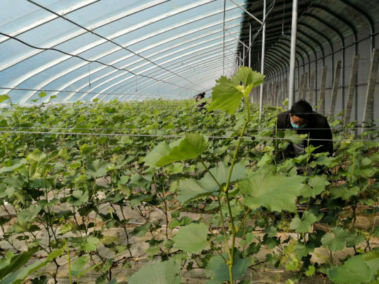 刘宅村党总支书记杨夫昌介绍,再过一个多月,大概在五月初就会迎来香妃葡萄的成熟季,现在的棚内管护水平将直接影响葡萄的品质和产量,因此目前家庭农场里的用工需求比较大。目前共有60余名农户在这里务工,像许兰这样的贫困户就有20人。