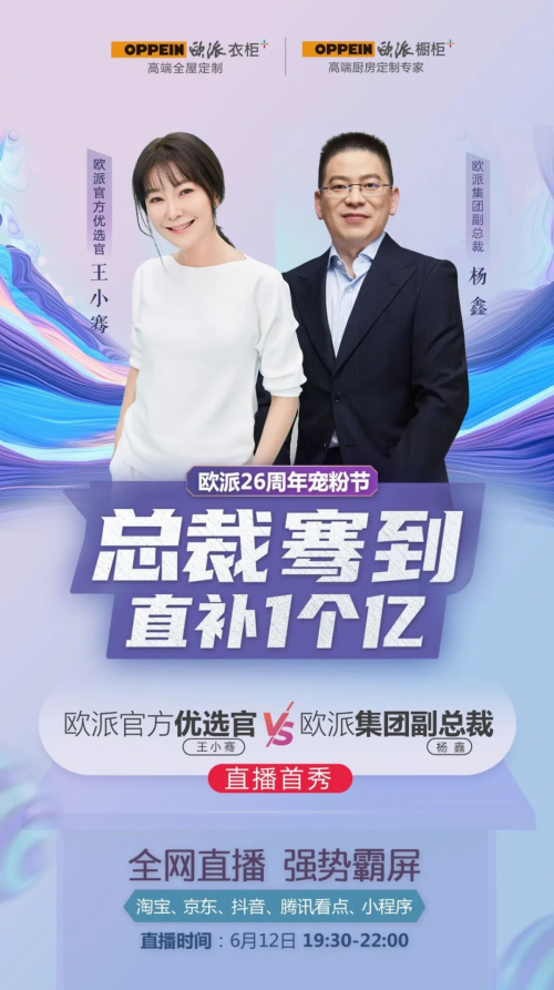 说到其中的佼佼者,不得不提欧派家居。6月12日,欧派以一场“总裁骞到,直补1个亿”的直播活动,近3小时直播收割超30000份订单的成绩。