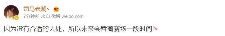 微博原文:“因为没有合适的去处,所以未来会暂离赛场一段时间”