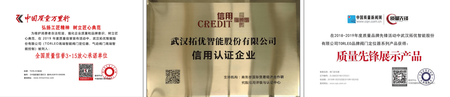 在与时俱进之中,拓优智能的设备不断推陈出新,取得的成绩也十分喜人。当前,迭代研发的第四代智能阀门定位器,已进入小批量生产阶段;基于工业云平台的新一代智能阀门定位器入选3551光谷人才计划项目;其中TORLEO拓优智能阀门定位器,还入选了CCTV《信用中国》的推广品牌;拓优智能成为商务部诚信单位、中国质量万里行全国质量3.15放心承诺单位;创始人柳曦也获评为2019中国经济十大匠心人物。这一系列令人羡慕的佳绩,都是拓优智能在柳曦带领下,坚持不懈共同发展所收获的丰硕成果。