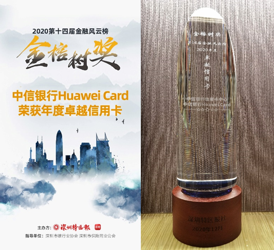 近日,由金融界主办的“2020金融界领航中国年度评选”、《深圳特区报》主办的“2020第十四届金融风云榜金榕树奖”两大金融行业评选奖项先后揭晓。中信银行信用卡中心凭借在信用卡领域的金融数字化转型和产品服务创新的突出表现,斩获金融界“杰出信用卡创新奖”;与此同时,该行今年推出的“手机里的信用卡”中信银行Huawei Card荣获《深圳特区报》金榕树奖“卓越信用卡”称号。