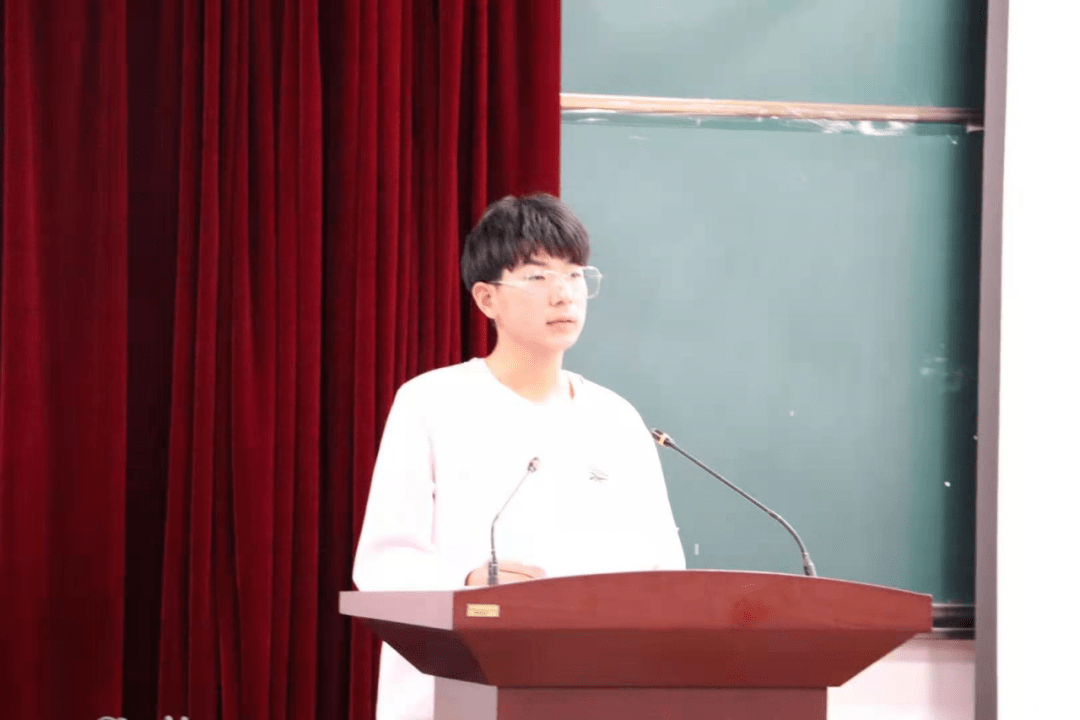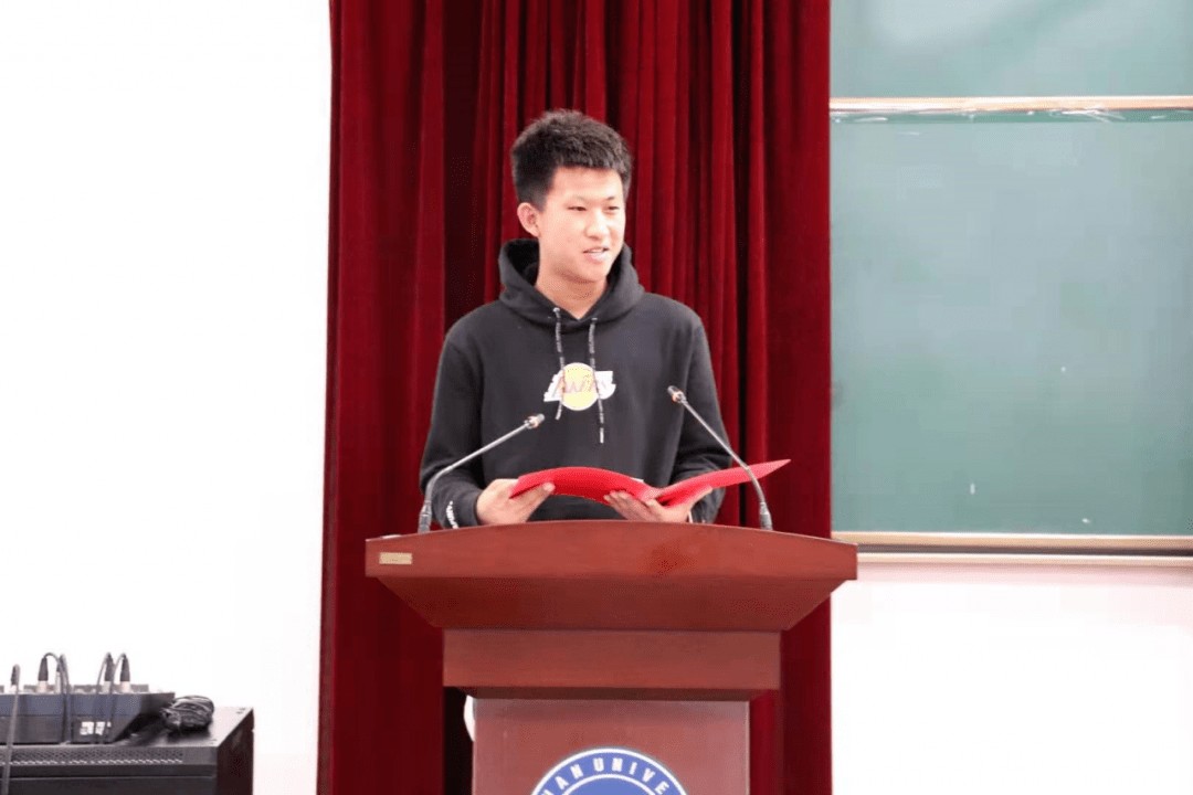 伴随着同学们的掌声,获奖者整齐从容的接过证书,走下讲台。又一阵热烈的掌声,机创赛国家一等奖团队成员张家祺作为代表上台发言。他向我们展示了参加比赛后自己成绩的提升,讲述了自己在比赛中获得的经验,为我们这些大一新生引出了一条光明有前景的道路。