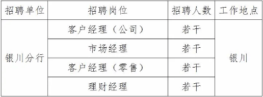 年龄35周岁及以下,全日制本科及以上学历;具有2年及以上商业银行相关工作经验;具备一定的专业知识,熟悉银行各类零售产品、业务操作基本处理流程及相关业务政策法规;根据上级部门和领导安排有效完成任务,有较强的学习能力;具有全局观念、服务意识、能承担较大的工作压力。4.理财经理