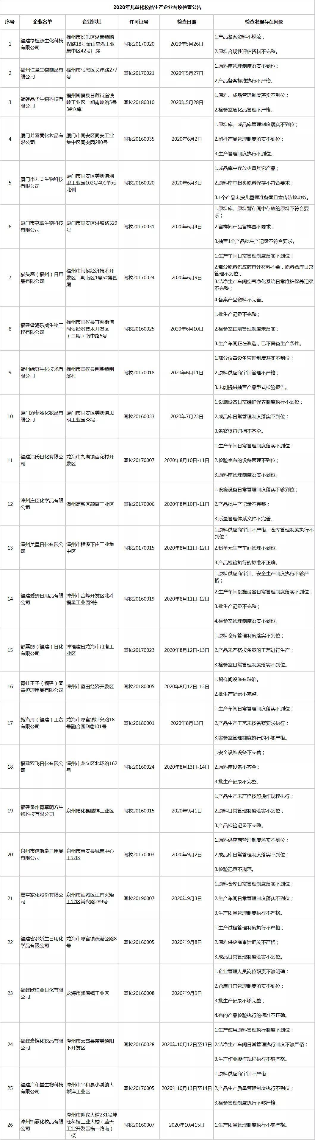 日前,福建省药监局通报了26家儿童化妆品生产企业的检查情况,这其中既有专业的儿童化妆品企业如青蛙王子(福建)婴童护理用品有限公司、漳州庄臣化学品有限公司,也有像嘉亨家化股份有限公司等一般的化妆品生产代工企业。