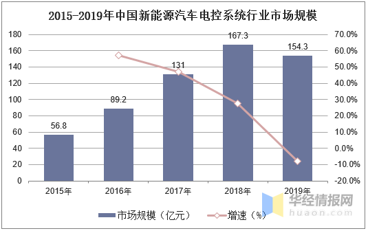 中国新能源汽车电控系统行业伴随新能源汽车的兴起而快速发展,其行业市场规模(按销售收入计)由2015年的56.8亿元人民币增长至2019年的154.3亿元人民币,年均复合增长率达到28.4%。2018年开始,由于新能源汽车补贴力度的下滑,资本市场遇冷,中国新能源汽车电控系统行业增速放缓。但“双积分制”的实施将政府补贴政策实现对新能源汽车行业的资金支持,并将政策鼓励转化为市场引导,有效建立了新能源汽车的长期管理机制,将拉动中国中长期新能源汽车产量的提升。