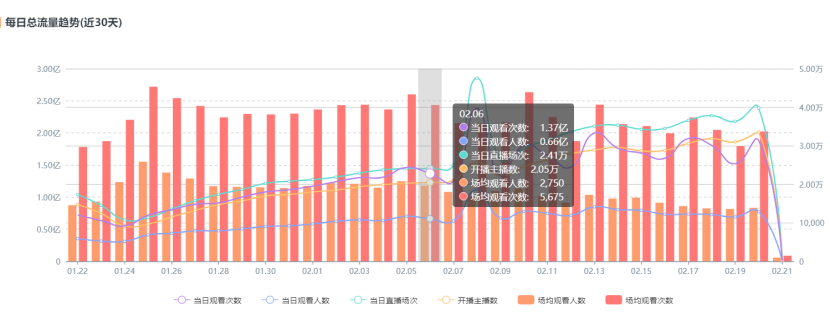 因为疫情,淘宝直播原定于二月的活动排期都有所改变,但是我们观察淘宝直播的大盘数据,发现受疫情影响并不大,直播热度相对稳定,直播场次甚至一天比一天多,这一方面得益于用户闭门不出有了大量的时候刷手机看视频,另一方面也是因为淘宝对于突发事件的快速应对能力。