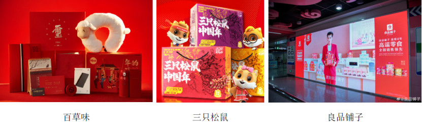 这三个品牌最受欢迎的产品都是年货大礼包,精美的礼盒包装,丰富的产品种类,还有可爱的周边产品,百草味和良品铺子还分别找来易烊千玺和吴亦凡这两位顶流小生作为代言人助力品牌,收获了大量用户的喜爱。