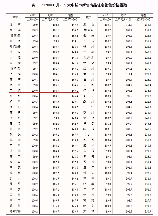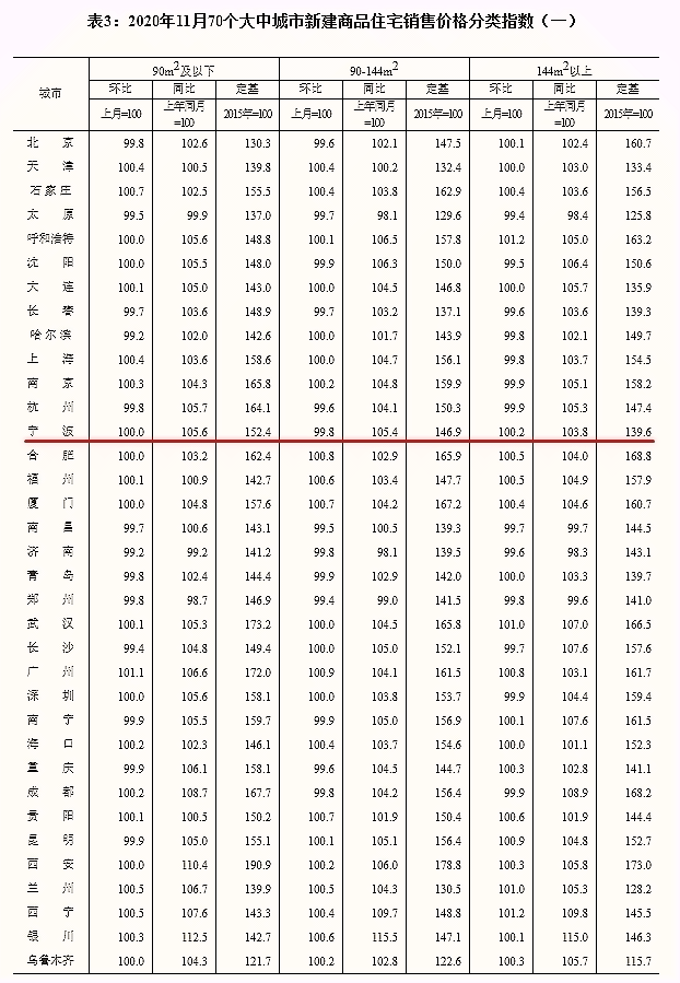 国家统计局网站14日公布11月份70个大中城市商品住宅销售价格变动情况。城市司首席统计师绳国庆解读2020年11月份商品住宅销售价格变动情况统计数据指出,2020年11月份,各地认真贯彻落实党中央、国务院部署,紧紧围绕稳地价、稳房价、稳预期的调控目标,进一步落实房地产长效机制,推动房地产市场平稳健康发展,