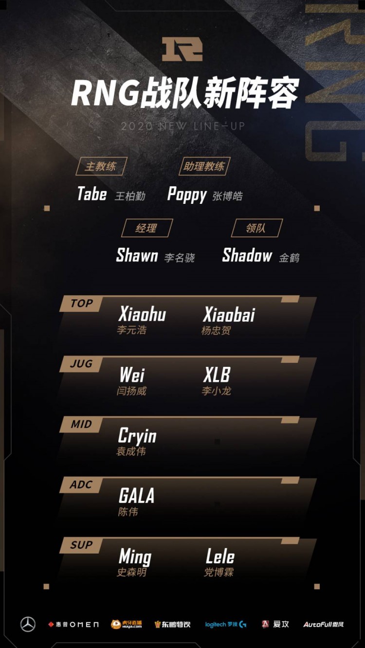 12月17日讯 RNG官博刚刚发布了英雄联盟分部新阵容名单: