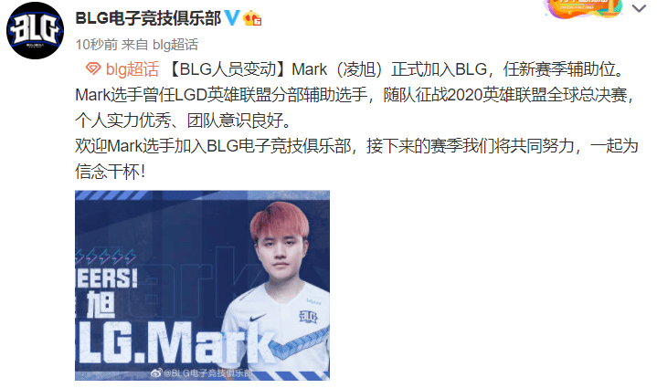欢迎Biubiu选手加入BLG电子竞技俱乐部,竞以技,韧以行,胜于心。接下来的赛季我们一起为信念干杯!