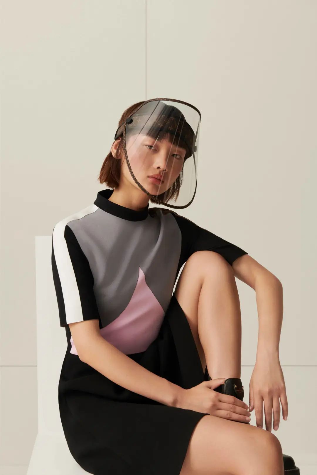据介绍,这款防护面罩是路易威登2021年Cruise系列的产品之一,保护面罩的遮板固定在侧面有金色铆钉的品牌标志的弹力带上。在阳光照射下,面罩的颜色会从透明色变成深色,起到类似遮阳镜的作用。同时,面罩还有多功能设计,翻转起来能变成一顶帽子。