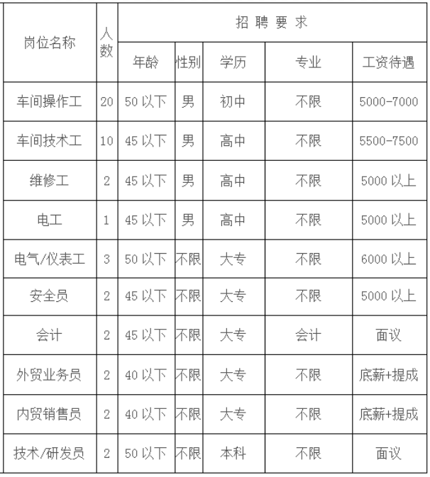 包吃包住,班车接送,车间每月有超产奖励,每月10万余元的安全环保奖励,过节福利,婚假、陪护假,公司职工工作一年以上公司可提供借款购房,入职试用期后缴纳五险。