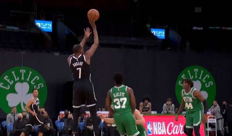 直播吧12月19日讯NBA季前赛,篮网与凯尔特人的比赛正在进行。比赛第二节,杜兰特先是在防守中盖掉奥杰莱的投篮,随后又在快攻中扔进一记急停三分。杜兰特这次精彩的攻防转换视频,吸引了包括NBA官方在内的
