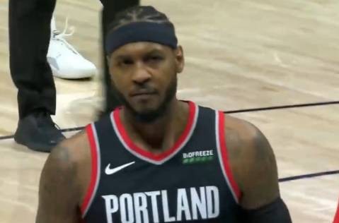 在比赛第三节末,安东尼顶着两人上篮未果,随后走向裁判抱怨得不到哨子,结果吃到第两个技术犯规遭遇驱逐。