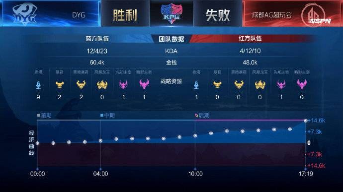 17分41秒,双方在野区出爆发团战,DYG在牺牲2人的情况下击杀AG超玩会4人,最后一波结束了比赛。