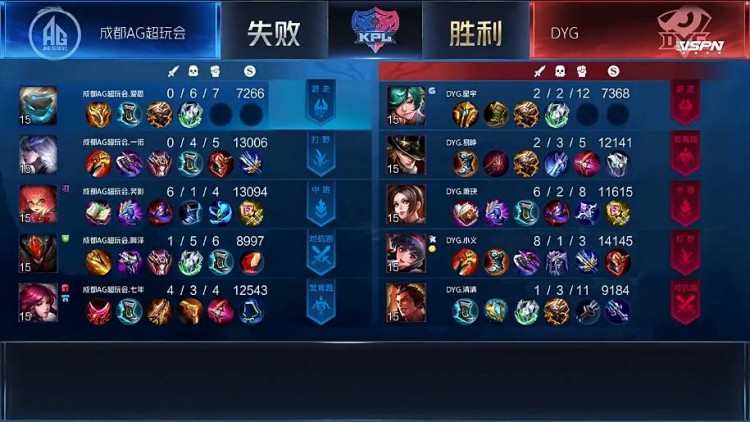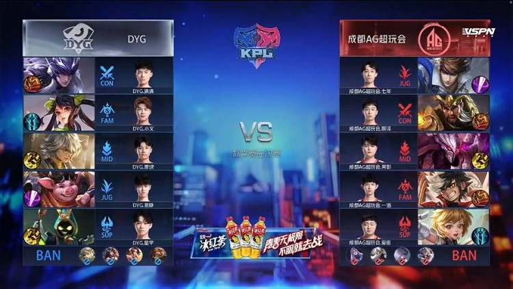 6分45秒,DYG五人包上成功击杀汤汤的狄仁杰,易峥的蒙犽顺势推掉AG超玩会的上路一塔;