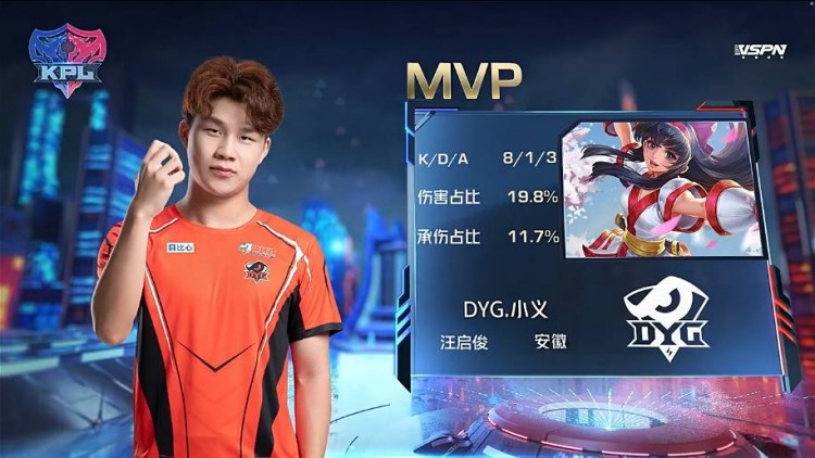 MVP给到了这场比赛中精准狙击的DYG.小义/娜可露露。