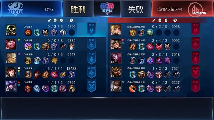 5分38秒,DYG成功推掉AG超玩会的中路一塔;