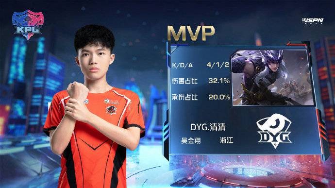 MVP给到了这场比赛中精准狙击的DYG.萧玦/百里守约。