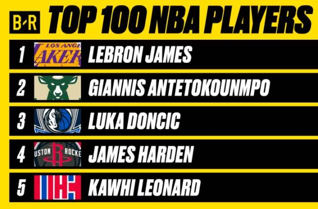 12月22日讯 今天,《露天看台体育》公布了他们评选的新赛季百大球员名单,詹姆斯排名第1,字母哥、东契奇、哈登和莱昂纳德分列第2到第5位。以下为具体的排名: