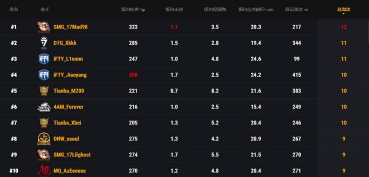 单场得分:MQ第二名11淘汰和iFTY同得17分。