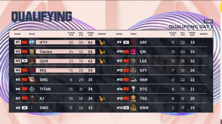 最终积分前四的iFTY、Tianba、QDR、MQ携手晋级。