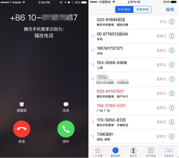 腾讯手机管家已向QQ浏览器、微信、QQ输出了SDK能力,可对风险网址进行识别拦截,当用户不慎点击风险网址时,会进行安全提醒,并切断访问;依托腾讯安全云库和10亿用户手动标记,腾讯手机管家拥有全球最大骚扰拦截数据库和强大的反诈骗能力,能够精准识别电话类型,智能拦截诈骗、骚扰、广告推销等类型电话、短信,帮助用户第一时间识别诈骗来电,避免被骗。