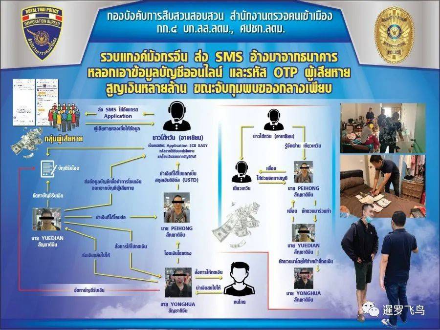 这些人都是非法入境泰国的,被指控通过假冒滙商银行的诈骗钓鱼短信获取客户个人资料和密码后转走钱。