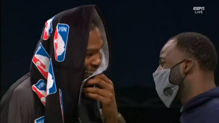 比赛赛后杜兰特接受采访时,转播画面也给到了杜兰特赛后和追梦格林拥抱致意,二人有说有笑,亲切交流的画面。