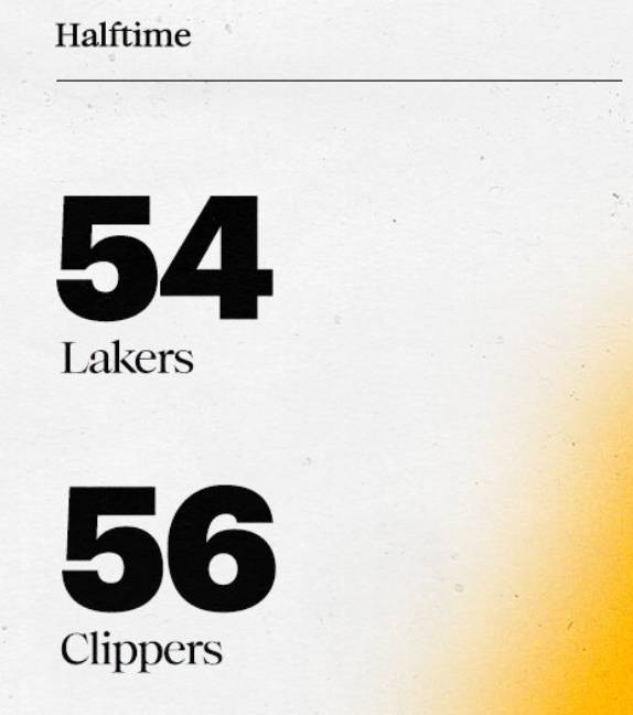 快船上半场的最大领先一度到了22分,但他们在第二节“习惯性”的断电让湖人把比分追了上来。
