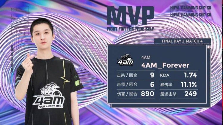 沙漠图决赛圈,7 圈场上四支队伍,KX、MCG 满编,4AM、NEXT 都是 3 人编制,4AM 主动前压淘汰 NEXT,随后 MCG 也被 KX 和 4AM 包夹淘汰,最终 KX 4 打 3 4AM,小鹿出枪击倒 KX 一人,双方来到了 3V3,随后永远和小鹿又相继击倒 KX2 人,3 打 1 4AM 18 杀吃鸡