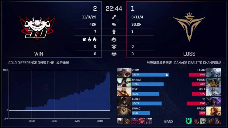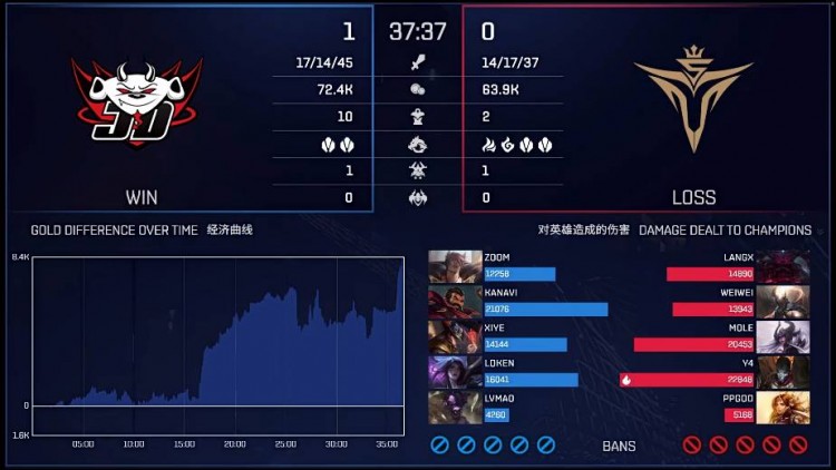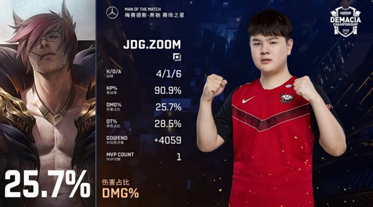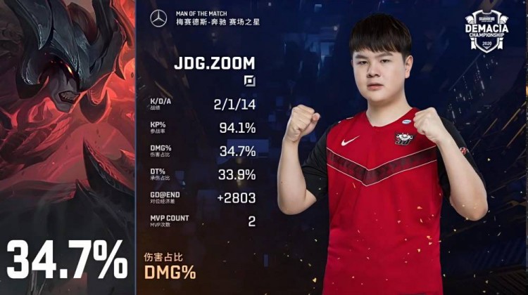 红色方JDG:佐伊、牛头、诺手、EZ、皇子