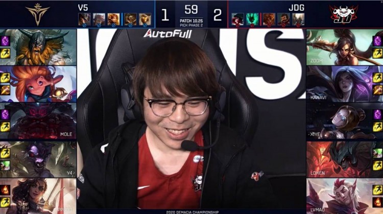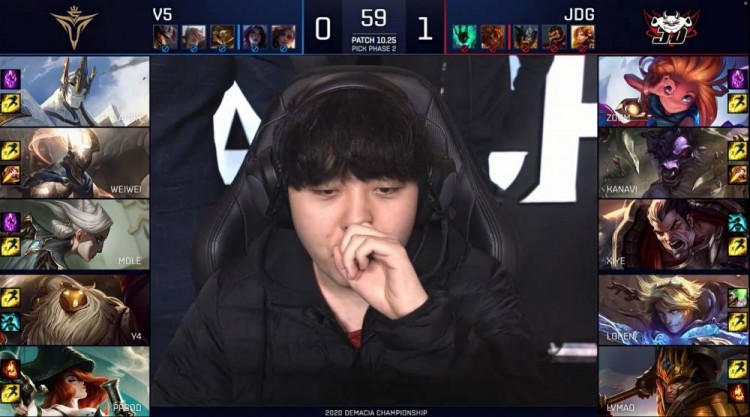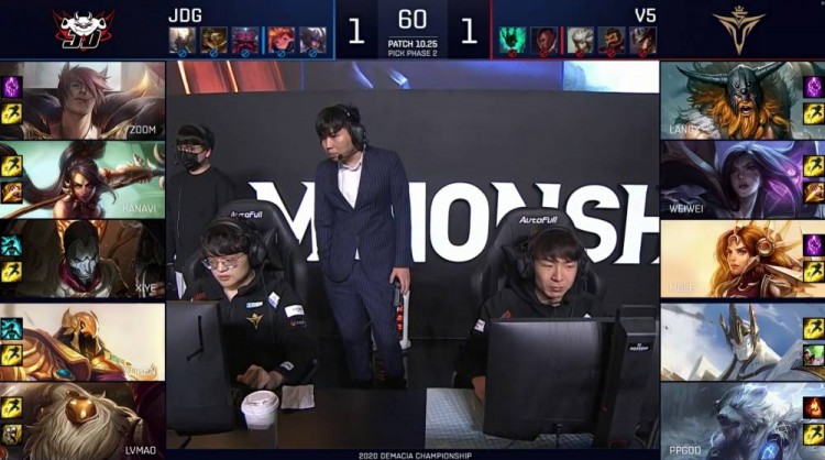 12月25日讯 今日2020英雄联盟德玛西亚杯八强赛第二日的对决继续进行,首场是JDG vs V5的对决。