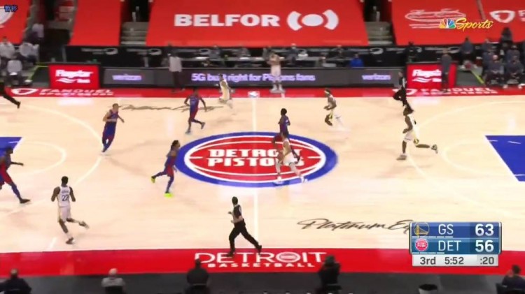 接着安德森从己方底线一路狂奔,超越了场上6人之后接到库里的穿针传球!再次侧身超越普拉姆利完成上篮!