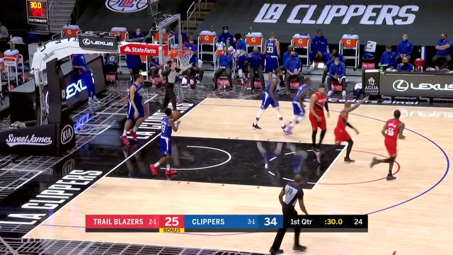 次节开局,祖巴茨篮下吃饼送出精彩单臂劈扣,杰克逊走底线拉杆上篮打成2+1,双方进入轮换阵容后快船依旧是占据着场上主动,考文顿外线迎着防守射进三分,开拓者一波攻势将分差缩小回个位数,暂停调整过后快船再次找到外线手感,连中四记远投,莱昂纳德强杀篮下打成2+1后场上分差已经突破二十分,上半场还剩两分半时利拉德突破上篮终于拿到本场首个运动战进球。半场战罢,快船76-57领先开拓者。